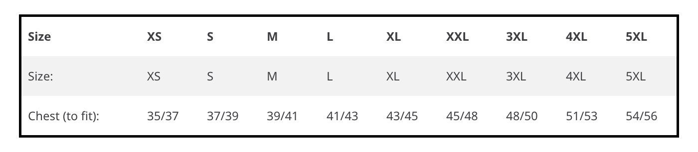 4XL and 5XL are available in the following colours only: Arctic White, French Navy, and Jet Black.